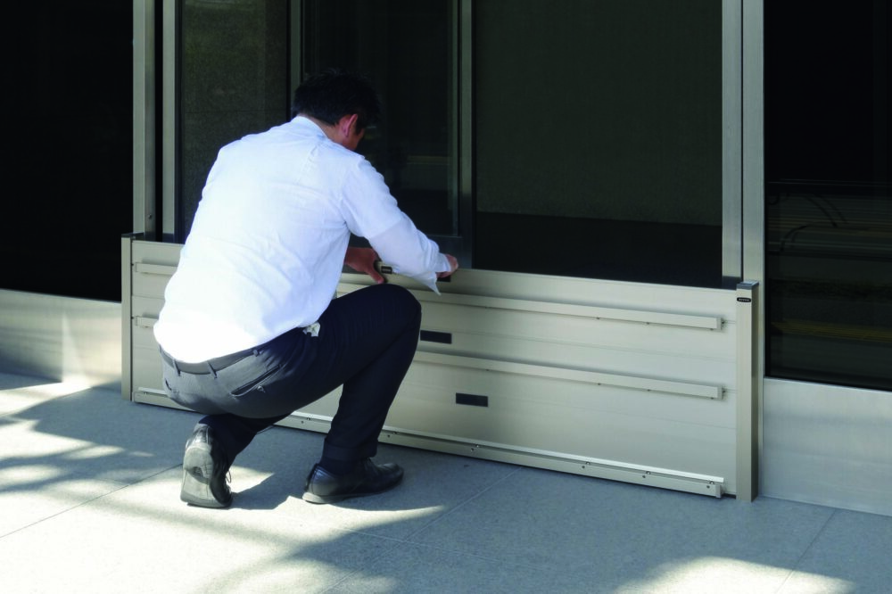 オクダケは、台風や大雨時に短時間で設置できる簡易止水板です。